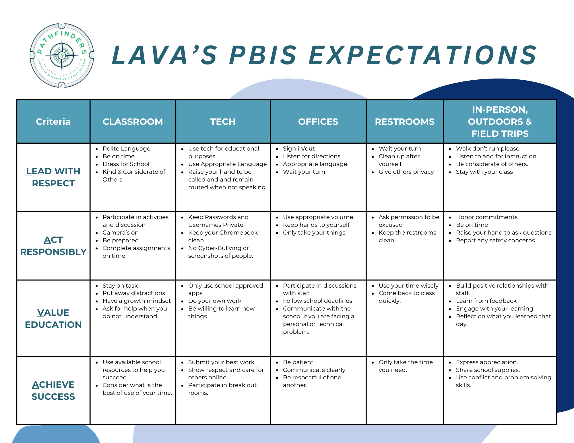 LAVA PBIS Expectation 25-26